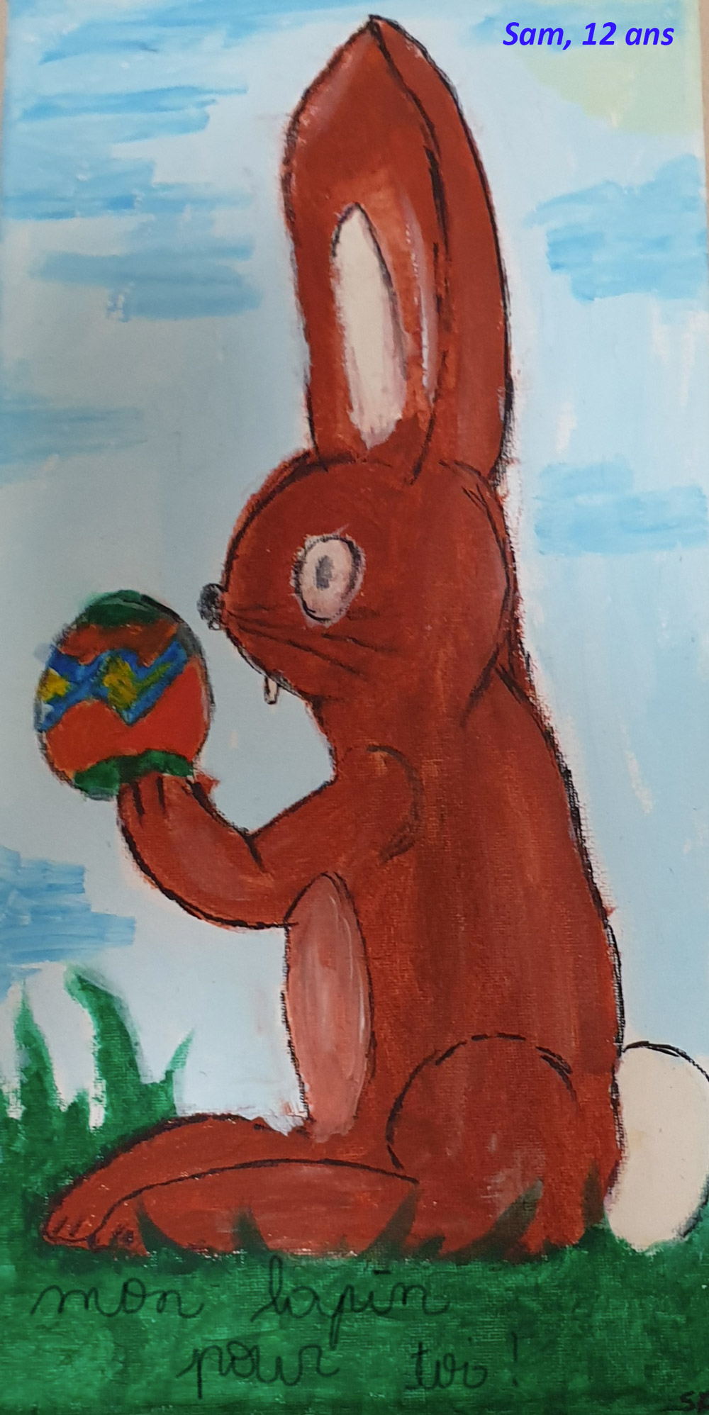 Au départ nous comptions offrir un petit cadeau à trois chanceux tirés au sort mais vu les qualités artistiques de nos petits cœurs, nous avons décidé de récompenser tous les enfants ayant participé.