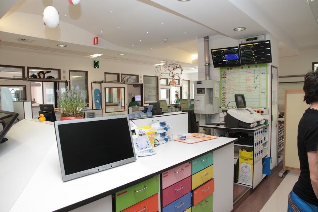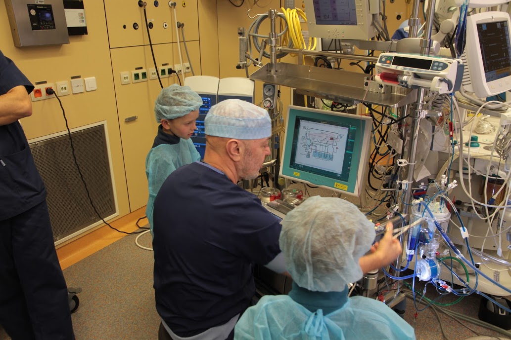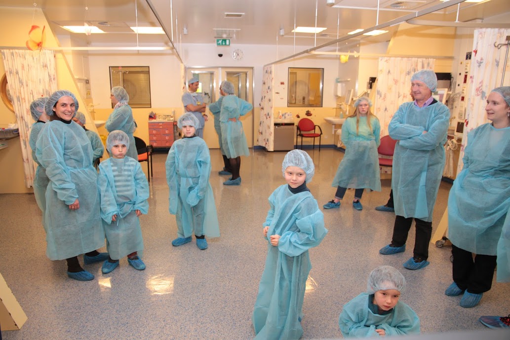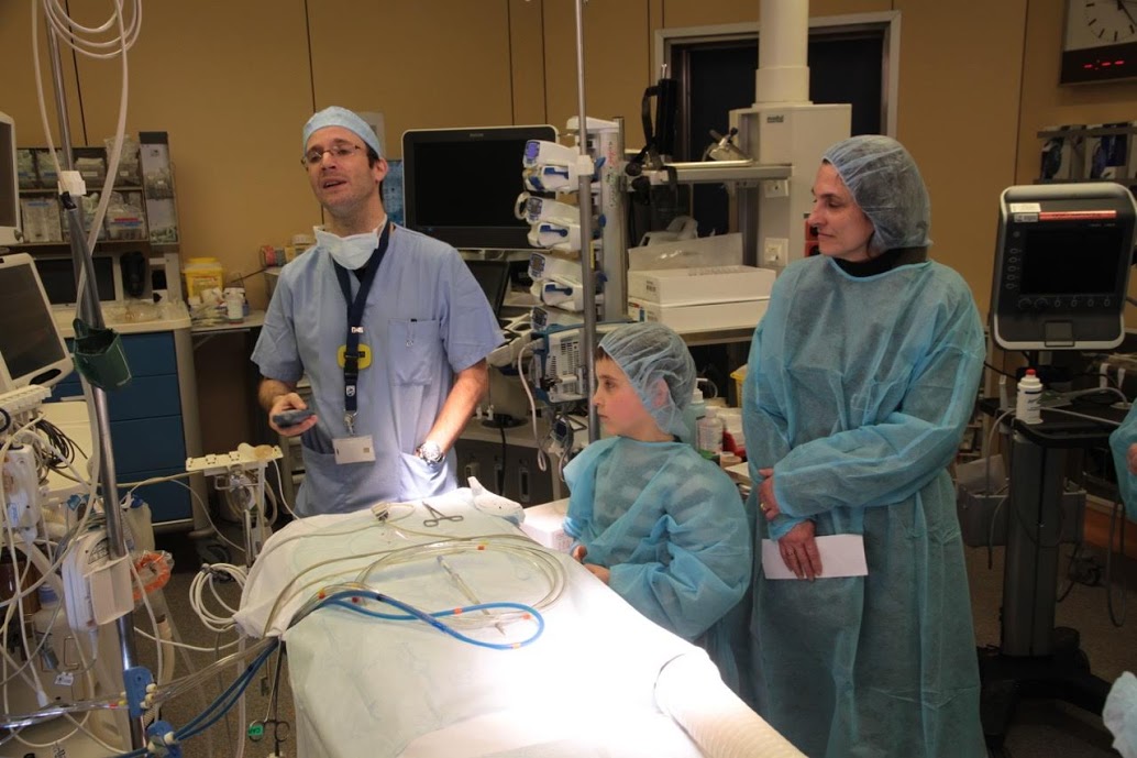 Visite de la salle d’opération, la salle de cathétérisme, la salle de réveil et les soins intensifs.